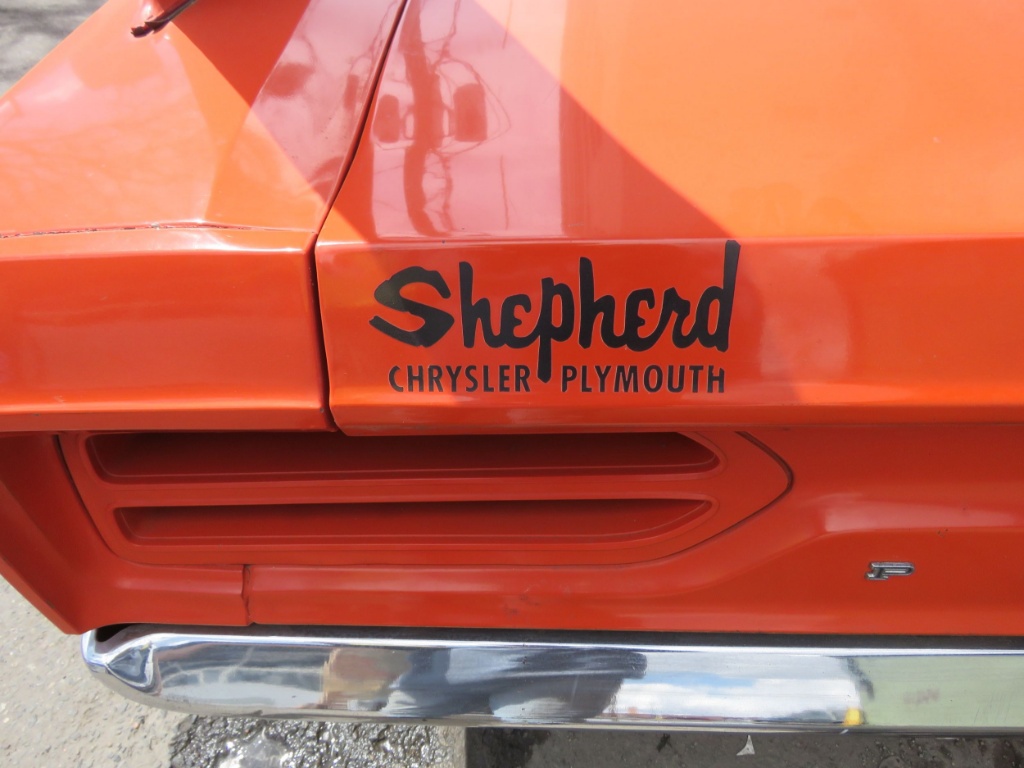 To be a real survivor, a car needs to have the factory paint still present, and while I can’t say for sure this is the original Tor Red finish it sure looks 50+ years old, in a good sort of way if you ask me. With all the over-restored Superbirds running around, it’s refreshing to see one with a dented beak and faded scoops, yet an example that doesn’t appear to be plagued with rust as so many of these cars developed. Another nice touch is the Shepherd Chrysler Plymouth tag on the trunk, which if it’s the same dealer is still operating in Auburn, Indiana, so maybe this is where the car was purchased new.