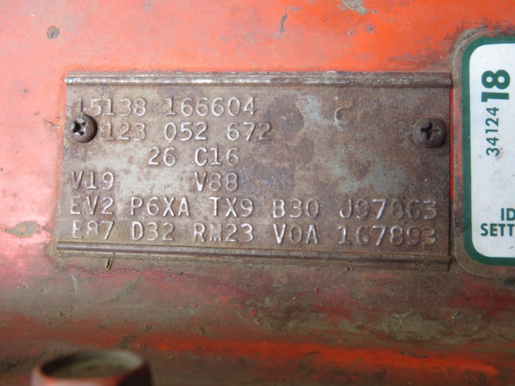 E87 in bottom left identifies engine, D32 IDs transmission, but on Superbirds 123 indicates both as a combo