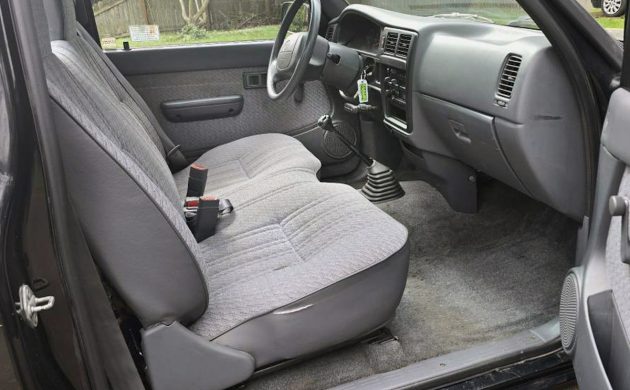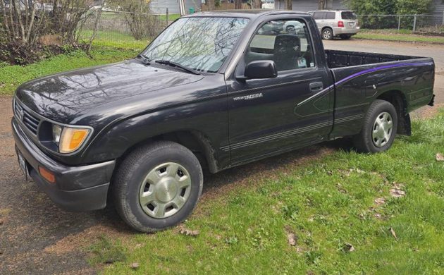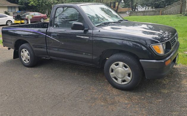 The engine should be Toyota’s 2.4-liter DOHC inline-four with 142 horsepower and 160 lb-ft of torque. Rolling through the 5-speed manual to the rear wheels, the seller says this is a one-owner truck, it has no AC, it’s all stock, strong, and reliable. Have any of you owned a Tacoma from this era?