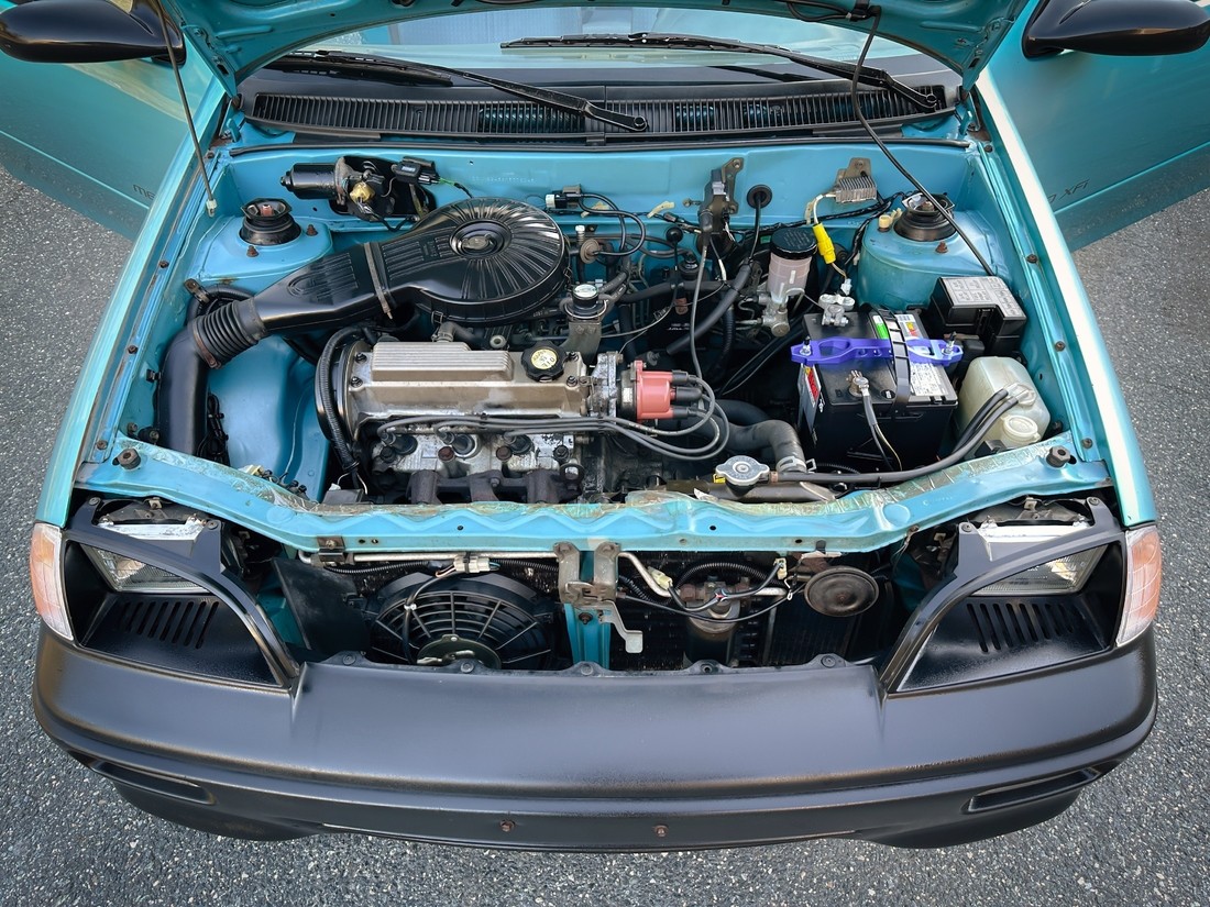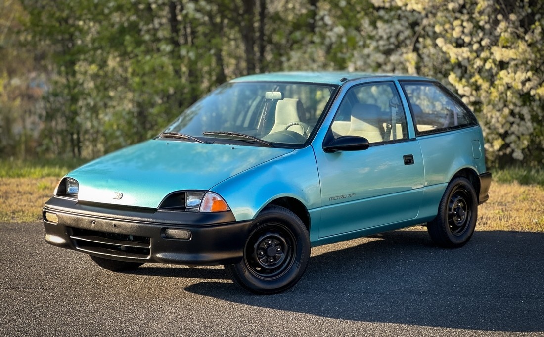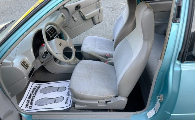 To squeeze more out of a gallon of petrol (as high as 58 mpg), the XFI had a 3-cylinder engine and was built to be lighter than the rest of the Metro line-up. The seller’s Plain Jane aqua-colored survivor has just 45,000 miles and uses a 5-speed manual transmission. The sparse interior looks capable enough and the paint is probably original, showing some of its age with no visible rust (there are scads of photos).