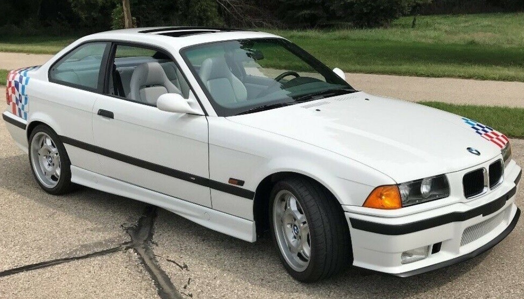 As the former owner of a 1995 BMW M3, this pristine, low-mileage example strikes a very personal chord. I loved that car, hands-down the best vehicle I ever owned. Mine was also Alpine White like this example, with those gorgeous “Style 24” wheels. My car, however, was nowhere as nice as this one, which has under 6,000 original miles. Despite the Motorsports flag graphics adorning the hood and rear quarters, it is not a factory lightweight model; still, when you see it here on eBay, there’s little doubt this is one of the cleanest examples left.