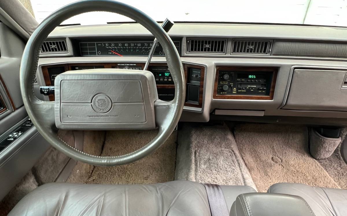 I love that Cadillac was still offering a thick padded Landau-style vinyl top in 1992, I think it suits this car well and adds a nice detail touch. The opera lights on that vinyl top make it even better – or worse, depending on how a person feels about vinyl tops. Some of the photos are extremely wide angle so it’s hard to get a grasp on the condition, but this car is in “mint condition” according to the seller and I believe it.