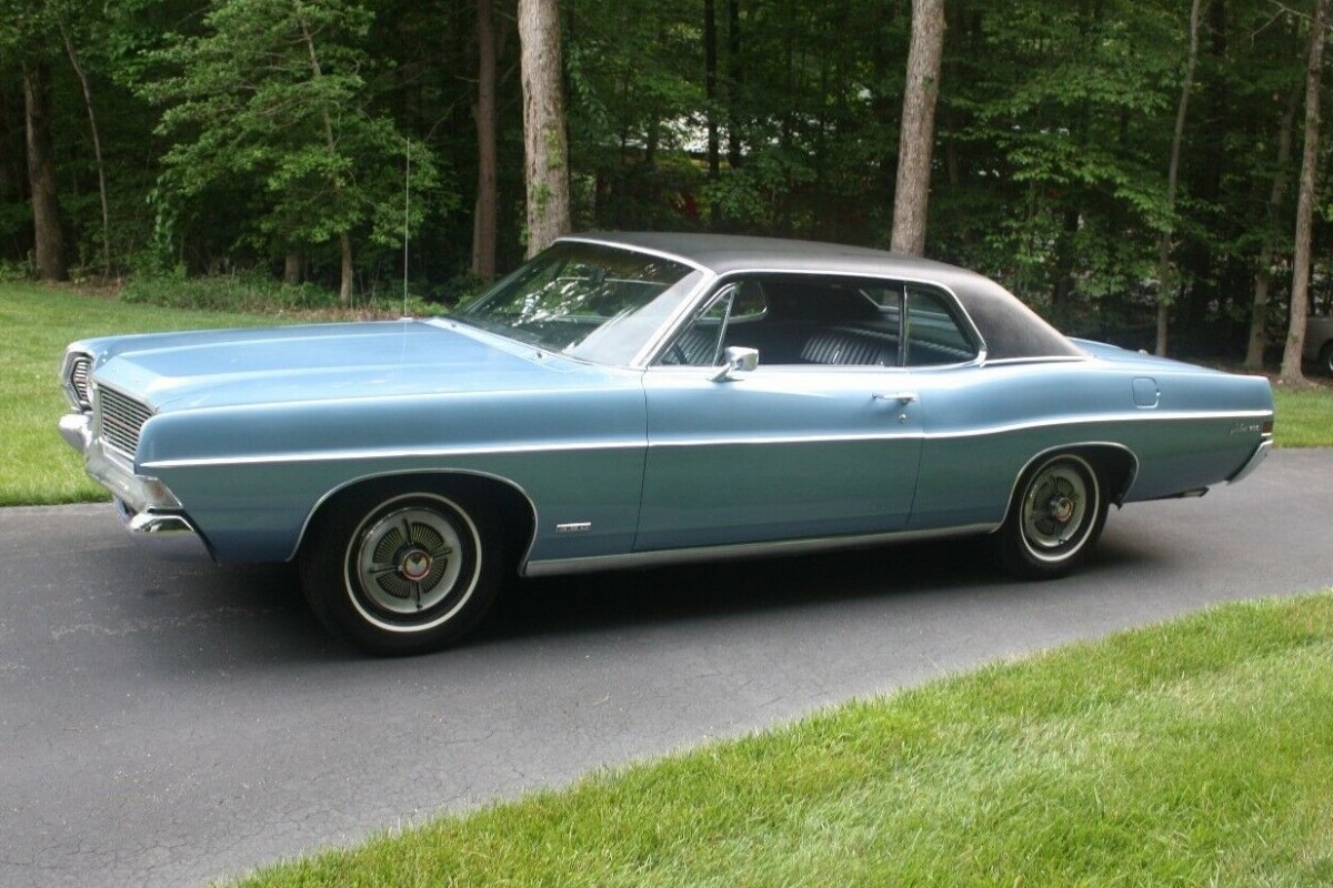 After three years, Ford decided its full-size Ford was done with the vertically stacked headlights of 1965 to 1967. By doing so, it gave its top line LTD standard concealed headlights, while the lower Galaxie 500 and Custom/500 models got a plainer grille with horizontally placed headlights. There were actually two Galaxie 500 2 door hardtop models offered in 1968. A sportier fastback roofline was shared with the XL, while this more formal hardtop roofline was shared with the LTD. Here is a 1968 Ford Galaxie 500 2 door hardtop for sale here on eBay in La Plata, Maryland.