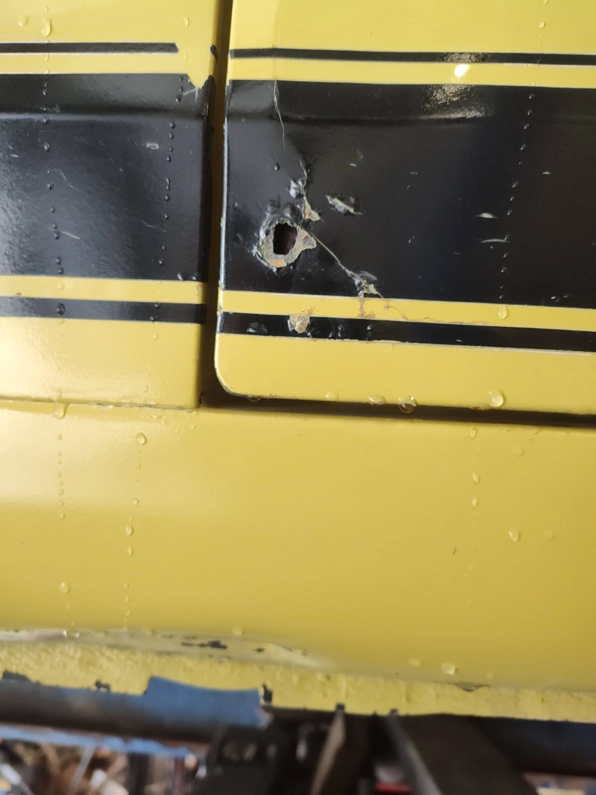 The Marti report clearly shows that this car was originally bright yellow. Are you sure that the blue you are seeing is not the lift that the car is sitting on?