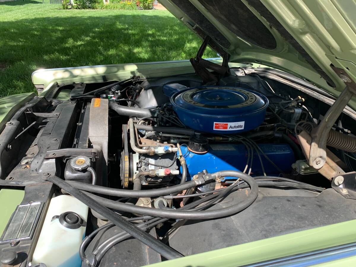 Lee Iacocca did not come from a background of wealth or privilege. His roots were most definitely working class, and that was probably the key to his success. Many consider him an automotive genius, and millions of words have been penned on the subject. However, my beliefs differ from many. It was a quirky and extraordinarily inventive sales initiative that brought him to Ford’s attention, and this ability saw him succeed both there and at Chrysler. He knew what made potential buyers tick and how the impression of a bargain would push sales over the line. His specialty was adding what I call “automotive tinsel” to an existing model, usually in the form of a vinyl top, cloth seat upholstery, and pinstriping. These cost the company mere pennies, but the company could charge a healthy premium and turn a tidy profit on each vehicle. Most consider the First Generation Mustang his greatest success, but I view the Lincoln Continental Mark III as his crowning glory at Ford. It is famously claimed that he directed Design Vice President, Gene Bordinat, to “put a Rolls-Royce grille on a Thunderbird” to create the Mark III. Thunderbird sales were in freefall, and Iacocca saw an opportunity to develop a Lincoln at a bargain basement price that could sell for a nice fat profit. His instincts proved correct because it allowed Lincoln to produce a model that consistently outsold the Cadillac Eldorado. This Mark III rolled off the line in 1969, with its original owner ordering it in Lime Gold with a contrasting Dark Green vinyl top. It has been garage-kept and pampered throughout its life, helping to explain why its presentation is virtually flawless. The paint shines richly, and any defects in it, the panels, or the vinyl, are too minor to show in the supplied photos. The car is rust-free, with no history of restoration. The trim and tinted glass are as-new, and the damage-prone hubcaps are perfect.