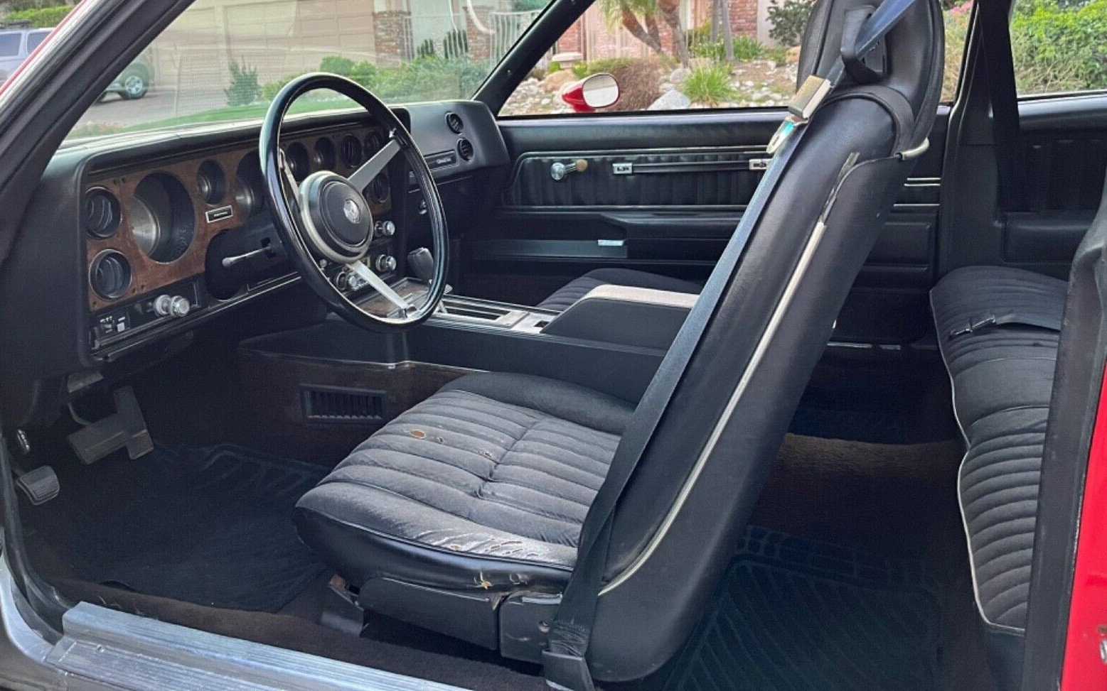 With a finish like that in the late 70s, it has to be a respray. Very sharp shiny and nice color combo. If I bought it I would fix the driver’s seat maybe find a tilt wheel column and cruise, then drive it. Some concern about the emissions not being there simply for the legality of being able to drive it.