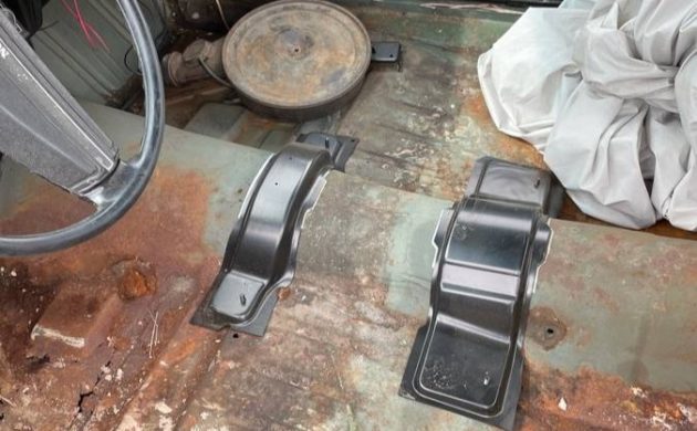 The white paint was redone, but rust has crept in over time. While the driver’s side rear quarter panel has some corrosion, it looks as though the passenger side will need to be replaced. The floorboards are suspect, though some repair work has been started. The seats and carpeting are out of the car, and the seller says the former are new, but they are nowhere in sight.