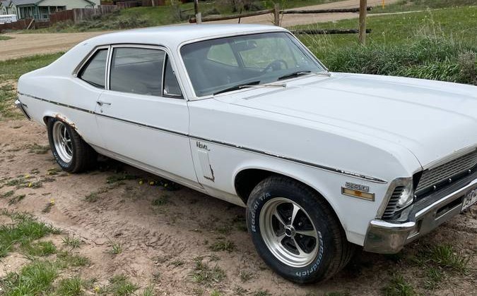 Since most buyers aren’t likely going to want to rebuild a basic motor, the seller has a 327 small block V8 (status unknown) to throw in for an SS-type project. A 200R4 transmission with overdrive is there for the taking. The seller has mounted new tires on aftermarket wheels (Keystones?). So maybe you could think of this as a muscle car kit!