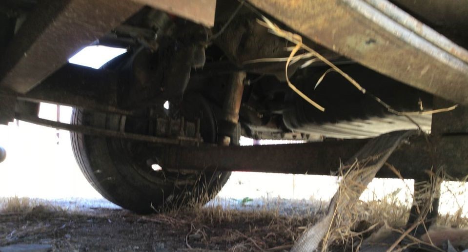 We’re guessing the furthest back axle is not live, that it’s not hooked to any part of the drivetrain, with the center set of wheels attached to the driveshaft. This assumes that the underpinning of the vehicle from the middle set of wheels forward is stock Malibu. With an El Camino back end added along with a topper.