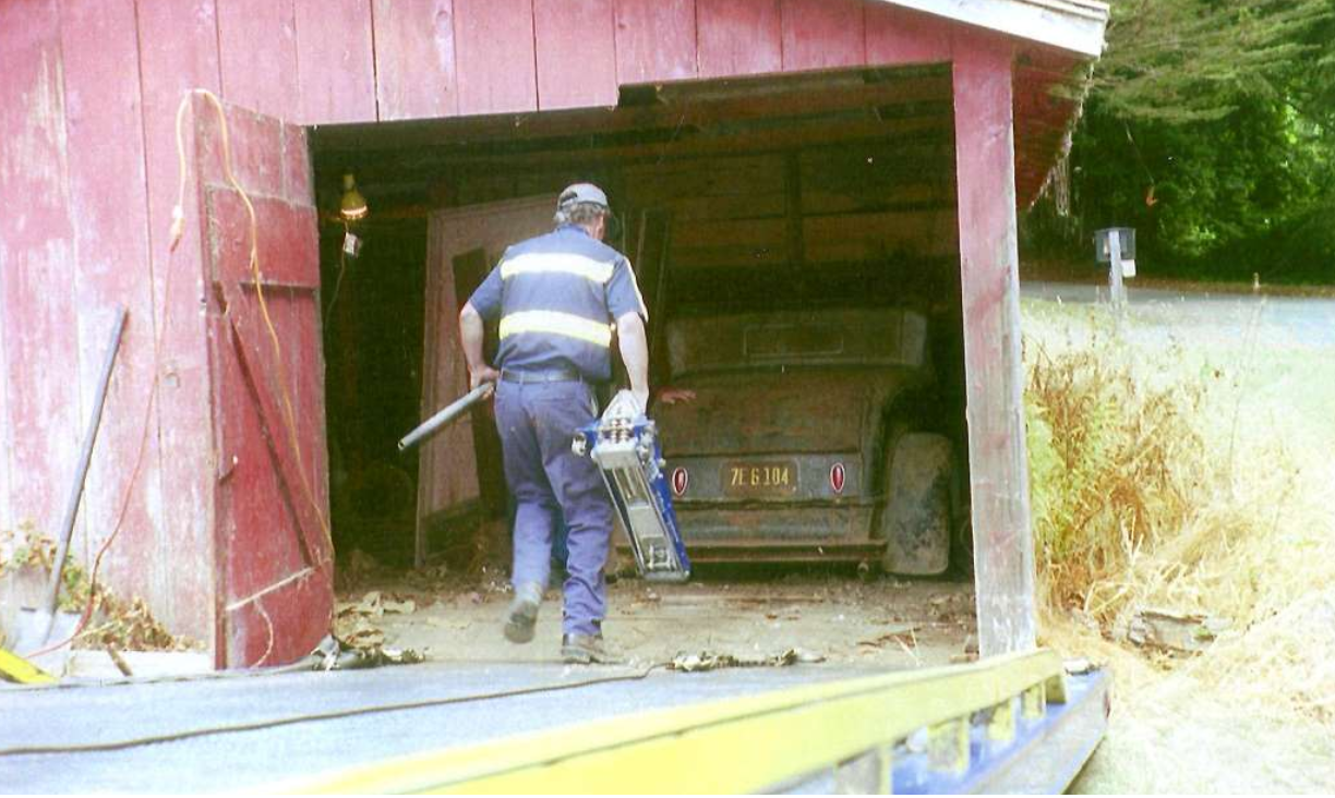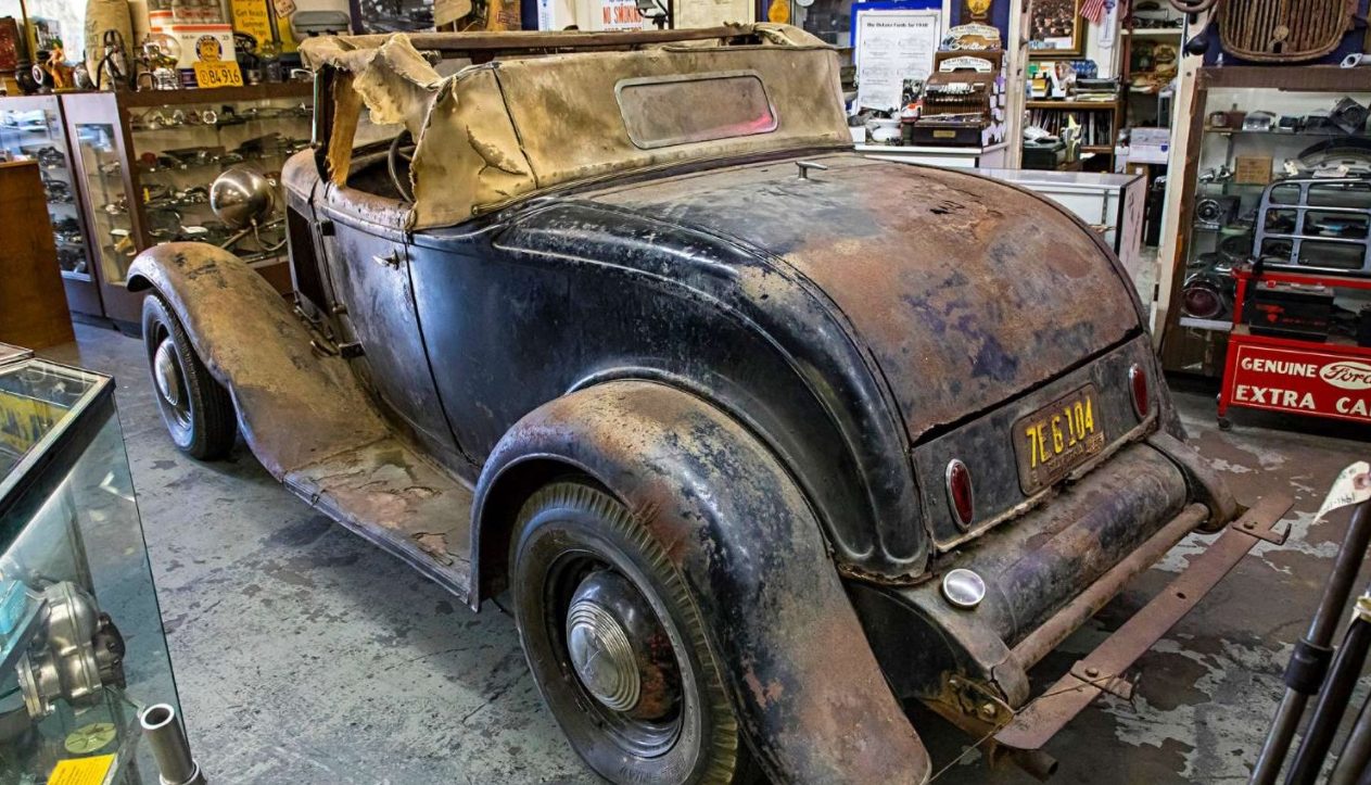 The story has some excellent historical artifacts beyond the car itself, including this photo of it before its long-term hibernation began. The new owners of the roadster are the proprietors of the Early Ford Store in Southern California, and they’re well aware of what they’ve stumbled upon. As the article notes, several period features are still intact on the Ford, including the early single-finger-hold hood hooks and “…early doors, with extra holes to attach the side curtains.” The curtains and the top are believed to be original and possibly never removed from the car.