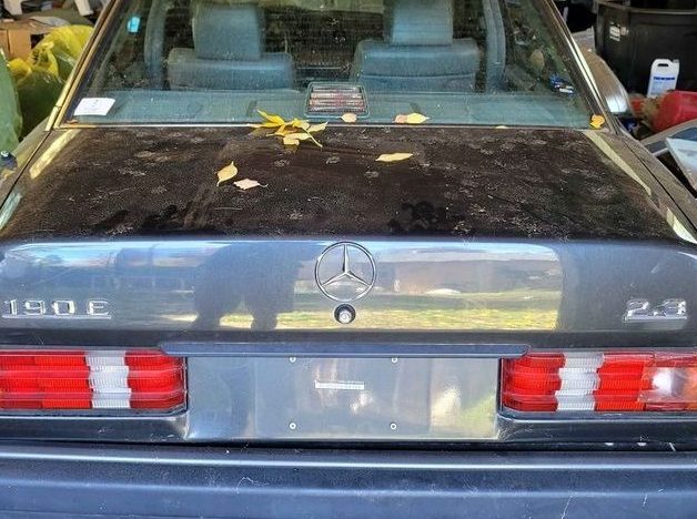 The parts I see of value here include the full interior; center stack controls with woodgrain trim; steering wheel; crack-free dashboard; 2.3 liter four-cylinder engine and automatic transmission; wheels and tires; ABS pump; power seat controls (if so equipped); headlights and grill; and plenty more I’m forgetting. Unfortunately, you may be waiting a while for those parts to sell given the small market of enthusiasts restoring the non-Cosworth 190Es.