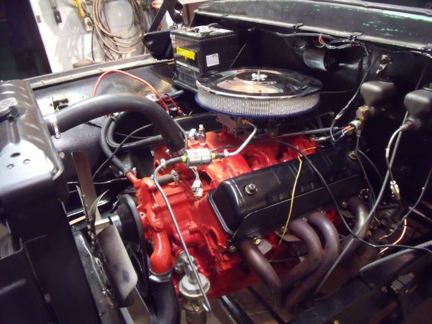 Inside, the vibrant red doors and dash panels reinforce the fact this truck hasn’t seen much heavy use despite its commercial-grade bed. The seller notes his father ran a body shop and stored the truck there for years. The drive from the shop to its current country home was uneventful, and the seller adds that the “…front end and transmission drove like new.” The interior really does look practically new in the wrapper, though the bench seat will apparently need reupholstering.