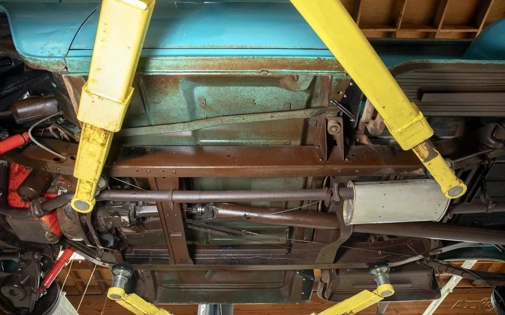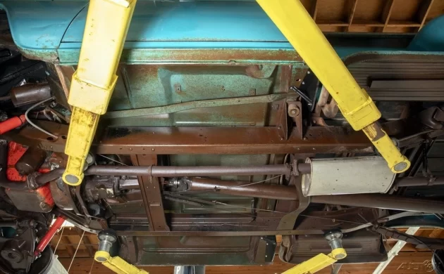 The undercarriage looks nearly immaculate, and the painted floorpans seem to indicate that the turquoise paint is original, although I can’t find it on any period paint chips.