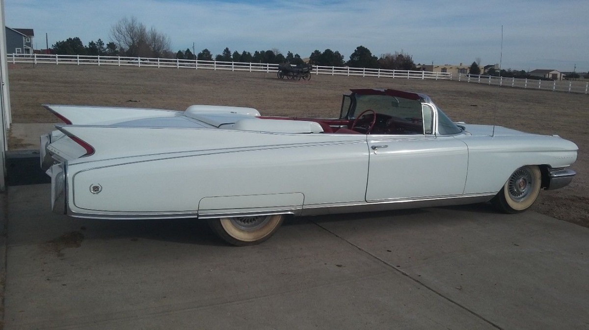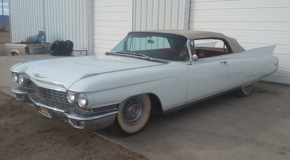 In my teens, a young couple moved in across the street. He was a 6′ 2″ house builder. She was 5′ 3″. blonde and HOT. She originally had a blue ’58 Impala convertible. It was lust at first sight. Then, she got a…you guessed it…a ’60 white Caddy, red interior convertible. Now, I was drooling and jealous…again. Love the 60 Caddys!! Just not convertibles.