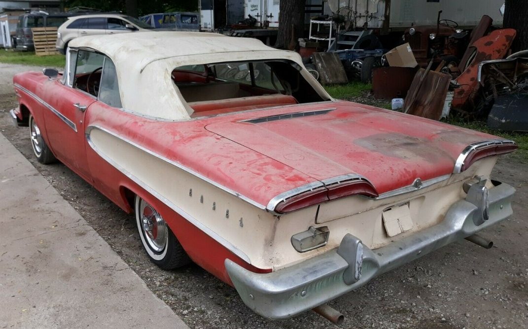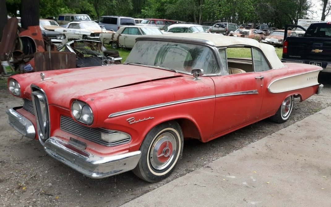 I have a 58 Pacer Convertible in the same color combo. Mine is a driver quality vehicle I’ve owned for 17 yrs. Stumbled upon it in a Hemmings ad. Wasn’t looking for an Edsel but this car intrigued me. Went to see it and drive. Ran well but leaked oil badly because the seals were shot. Rebuilt the E400 and it runs well and doesn’t leak.