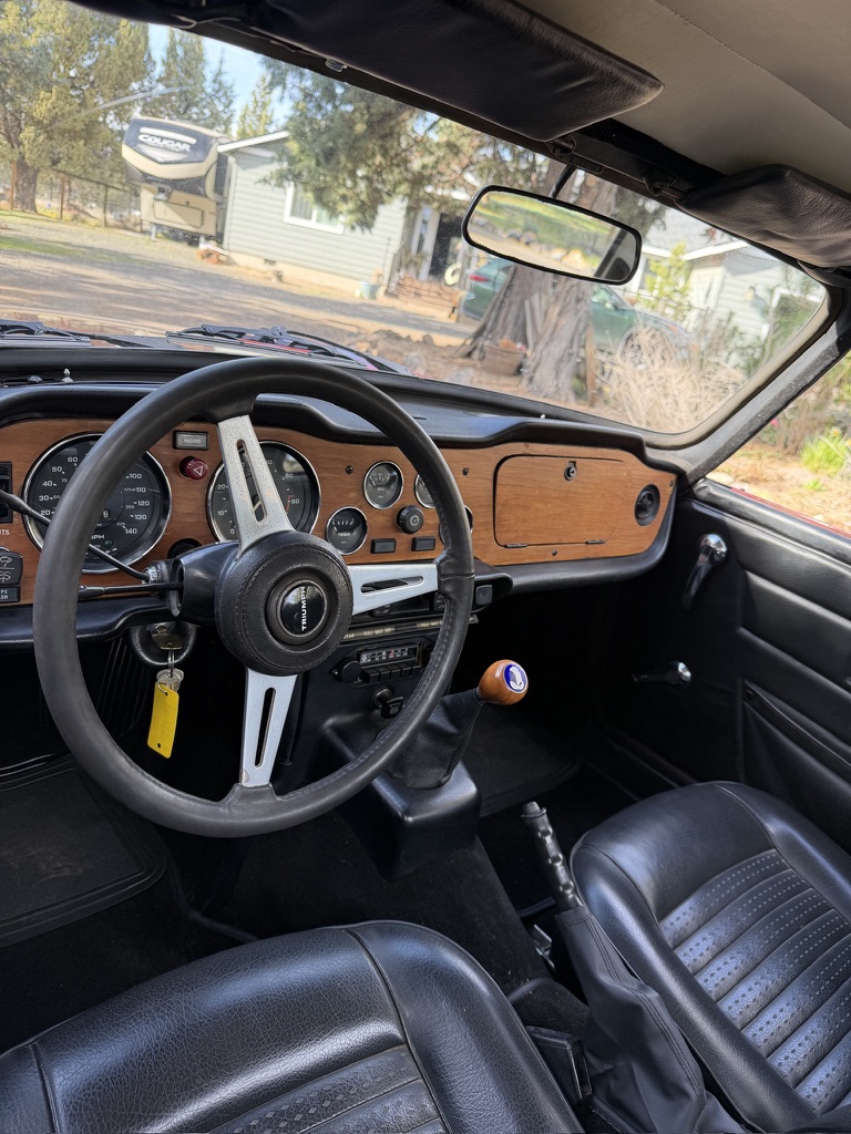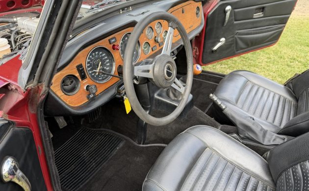 Triumph released the TR6 for the 1969 model year, with the last cars leaving the Coventry factory in 1976. The TR6 proved to be a sales hit, with 91,850 sold during its production life. The company targeted export markets, with North America dominating the sales tally. Our feature car rolled off the line in 1974, looking stunning in Code 82 Carmine Red. The owner states that the TR6 was repainted approximately ten years ago, and the lack of significant deterioration suggests the shop focused on a high-quality result. The paint shines deeply, with no major flaws or imperfections. The panels are as straight as an arrow, with only a couple of small parking-lot dimples. None are severe, and don’t detract from this classic’s overall presentation. The garage-kept Triumph has spent its life in a dry location in Oregon, and it is worth scrolling through the image gallery. The underside is among the cleanest I have seen on an unrestored TR6, meaning that rust isn’t an issue. The buyer receives a stunning color-matched factory hardtop and the original canvas soft-top with its reflective strips, bows, and mounting hardware. Throw in the top boot and a tonneau cover, and it has every eventuality covered. The trim and wheels look excellent, and the glass is crystal clear.