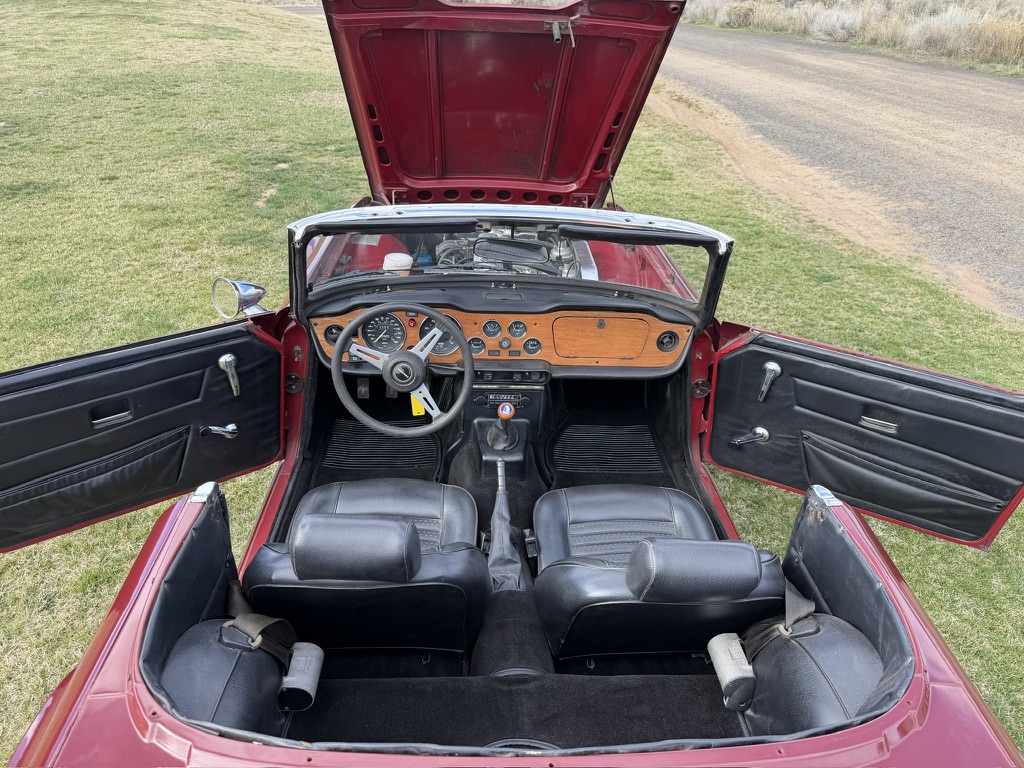 Triumph equipped the TR6 with its 2.5-liter straight-six, with this car inhaling deeply through dual carburetors. Its 106hp feeds to the rear wheels via a four-speed manual transmission with optional overdrive, giving this classic long legs on the open road. The history of this British beauty is interesting, with its original owner as its custodian until he passed away in 2020. His health had deteriorated over a few years, and the TR6 had hibernated until it was purchased by the current owner. He states that this gem is numbers-matching and that he has invested a considerable sum to ensure it is a turnkey proposition. The clutch, master cylinder, and slave cylinder are new. The braking system also received a new master cylinder, rear brake shoes, and new brake lines as required. He also fitted a new aluminum radiator, a fuel pump, sender unit, battery, and H-Rated 15″ tires. With a recent oil change, coolant flush, tune-up, and carburetors balanced, the TR6 is a turnkey proposition that runs and drives extremely well. The engine runs cool, the oil pressure is healthy, and there are no fluid leaks. The buyer can slip behind the wheel, turn the key, and head towards the horizon.