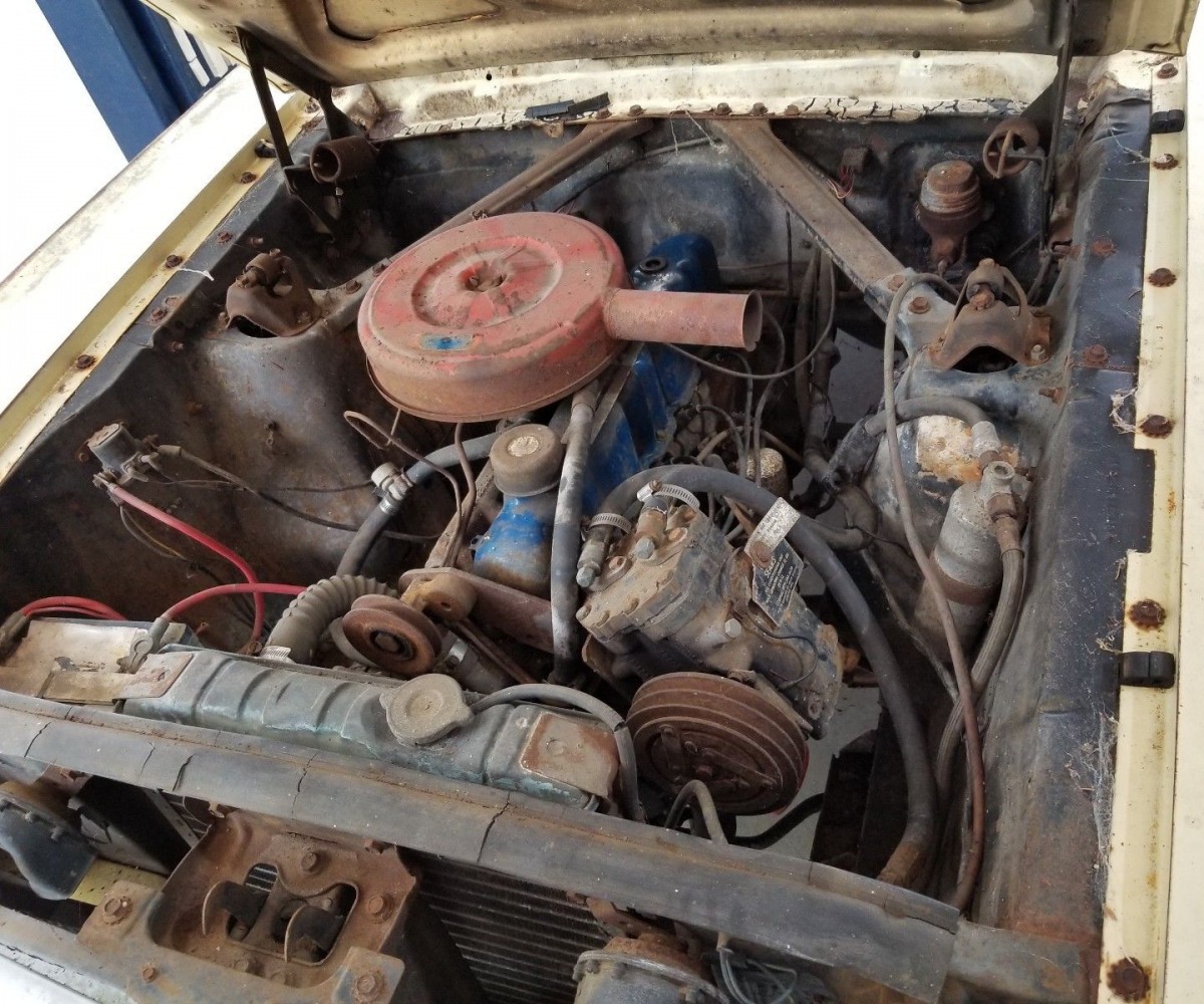 The ad tells us that this was a one owner car. If that wasn’t enough, the car is claimed to have 61,103 miles on it. Under the hood is the standard Mustang straight six cylinder engine backed up by a four speed manual transmission. The seller tells us that this car has factory air conditioning and that the glass and chrome window trim are in good condition. We are also told that there has been no attempt to start the car, and that it has the normal amount of rust for a car of this age.