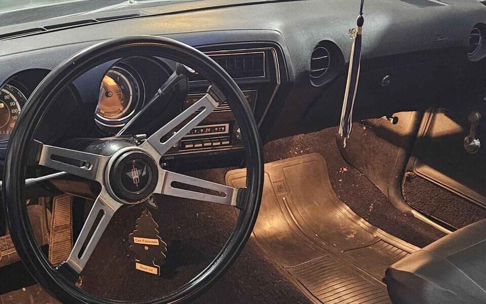 The interior is an interesting study as it is equipped with bucket seats but no center console. And those seats are wearing some cheap-looking seat covers which makes one wonder what may be lurking underneath. Well, the documentation spills the beans, the seats aren’t original and they’re upholstered in white so that explains the covers – the bench seat is included in the sale. Another swap is the four-spoke steering wheel – a signature Oldsmobile item, and yes, the original is included too. This is a non-A/C equipped car and the documentation states that it originally hailed from Idaho so I guess the original owner didn’t feel that it was necessary.
