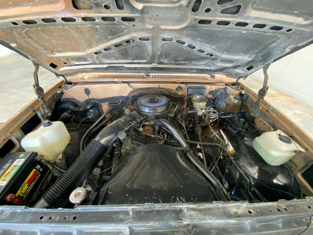 4.3 V6 3on the tree not a power house but a fun ride she has some cancer starting on the lower fenders I’m sure someone will V8 swap it