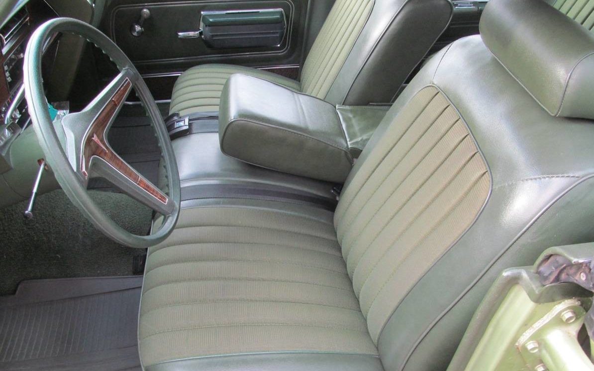 No surprise under the hood, it’s a commonly found Pontiac 350 CI, V8 engine that develops 160 net HP. While the game could be up’d to include a 455 CI engine, this example’s 350 motor is much more typical. The seller’s comment regarding this LeMans’ motoring capability is, “Runs and drives 100%.” And there is no reason to suspect anything other than that. The engine compartment is tidy and original, it appears as Pontiac intended. While a V8 engine was standard fare in the Luxury LeMans, so was a three-speed manual transmission, something that seems out of synch with an automobile promoting a luxury aura. Nevertheless, this Pontiac has the typically found three-speed Turbo-Hydramatic 350 automatic unit.