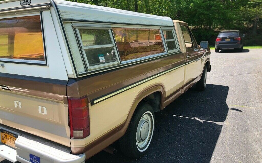 Had an ‘85 in this trim, but w/ 4WD and those silver spoke rims w the double red stripe beauty rings – one of the best looking 15” wheels (remember when that was the norm) Ford ever made. It was my daily driver for ten years when I ran a small construction company. The straight six was a hard engine to kill and mine got less than special treatment (along with the rest of the truck) and never missed a beat all the way to 300k when I sold it. Oil changes were done when time allowed, but usually not more than three or four times a year – 8 or 10k between each. Never had a problem with the loose carb, manifold studs or even the clutch as others mentioned. I did however have to replace the tie rods and other twin beam suspension bits more than once apiece as I remember. As well, the tailgates tended to split at the side seams and buckle in the middle around the handle after a while, but the next generation (‘87+) I used as a second replacement fit fine and seemed to last longer. When the beaten and rusting bed really needed replacement I bought a front end wrecked ‘85 2WD XLT with a good running 302 and C6 in the same two tone combo, but clean with no rust or dents anywhere. Not only did I get a new bed and rear bumper, but there were a bunch of other goodies that were used to upgrade my plainjane F150. I swapped over pretty much everything that could be easily transferred to my truck as they sat side by side in the garage. The dual tank setup was an easy grab with both beds off! Then I grabbed the upgraded cloth seat, the tachometer, the wiper delay, the carpet, the passenger side switch for the overhead cab light (as it turns out the wring was already there), the headliner, the sliding rear window, the bed light (took a bit of drilling and careful use of a jigsaw to install) and the lower carpeted door panels. I’m sure there were other things as well, but it all got done in a single weekend. Then I advertised the 302 and C6 in the Pennysaver (remember what you used before Craigslist?) with the caveat that the wrecked and now stripped carcass with my bashed and rusted bed sitting loose on the frame went with them for more than I’d paid for the the wrecked truck to start with. Only other mods I made to mine over the years was to install the smaller diameter steering wheel and better feeling window cranks out of an ‘87+ truck. After I finally did sell it around 1995, I used to see it on the road for another 5 years or so. The new owner seamed to be a fan of diamond plate, but he never removed the stickers in the rear window so I knew it was mine when I saw it on the road. I’ve owned a couple of stripper Toyota trucks since, but never felt the same attachment.