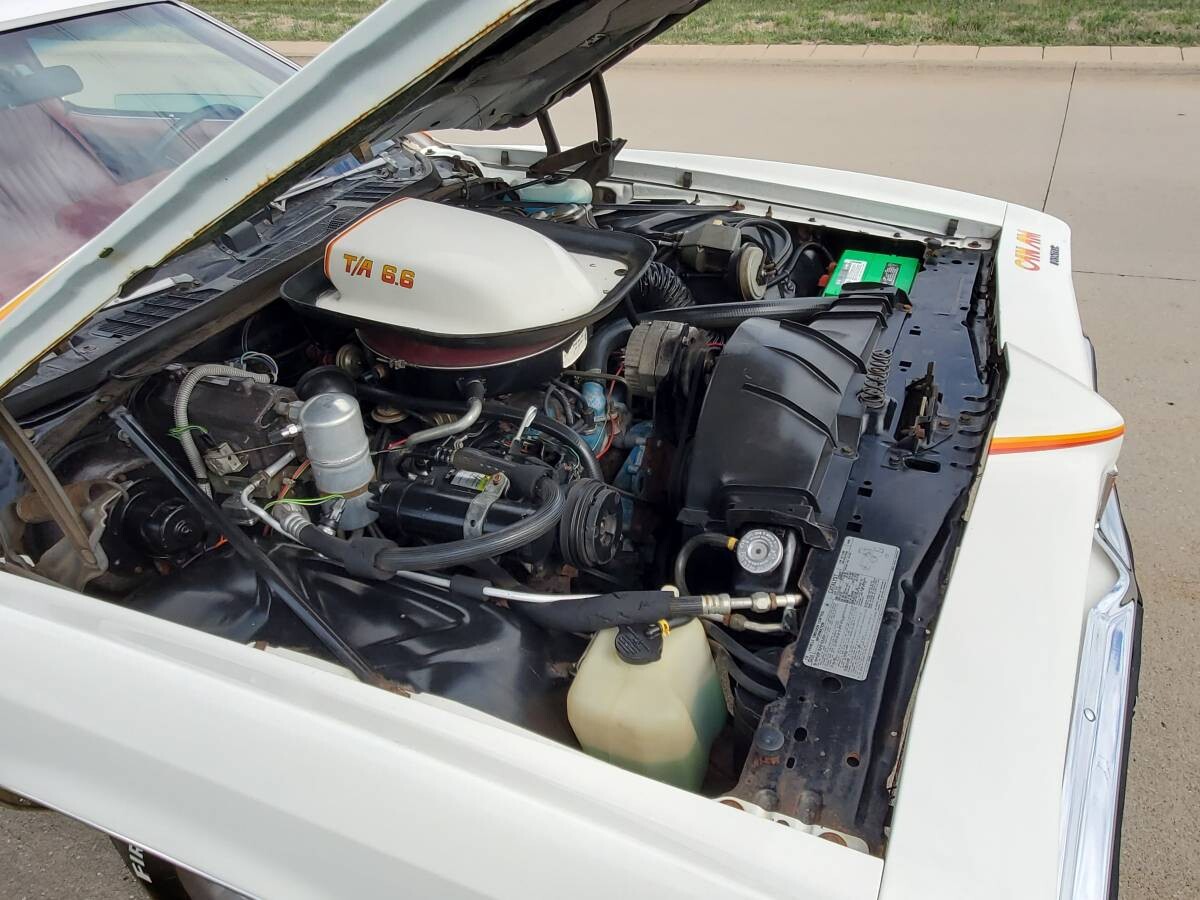 The photo(s) provided show the Pontiac engine which was also massaged a bit, prior to installation. Advertised performance numbers are not to be believed. Only 42 were manufactured with the California/Olds smog motor which makes them rare but still undesired. It should also be noted that prior to the rear spoiler tooling damage, there were still a couple thousand Sport Coupes waiting, in the que, for modification, WITH the modified engine AND suspension upgrades. Very few people know about those cars but, the folks that do are willing to pay an appropriate premium.