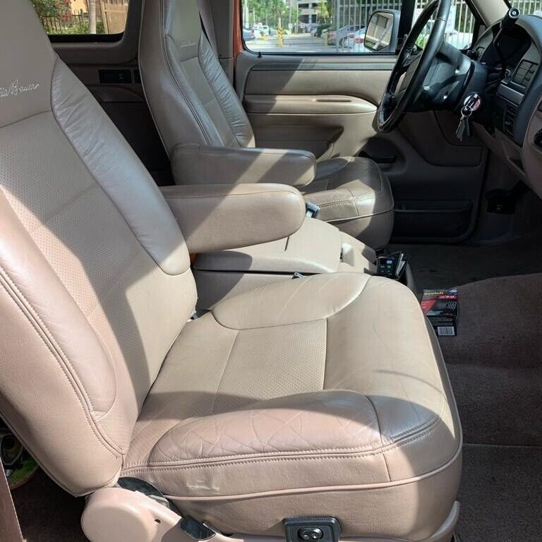 Life inside this Bronco should be anything but unpleasant because comfort and safety features abound. The driver slips behind the wheel equipped with an airbag while air conditioning, power windows, power locks, power seats, power mirrors, cruise control, a leather-wrapped wheel, and leather upholstery make occupants feel like royalty. The supplied images suggest the only aftermarket addition is a CD player, with the rest of the features intact and working as they should. The seats sport typical wrinkles associated with gracefully aging leather, while the Tan carpet looks fantastic considering the vehicle type and pale shade. This interior appears to need nothing and should be a pleasant place to spend time as the miles roll under the tires.