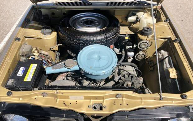 This is the only other exterior photo, I kid you not. I know, I don’t understand it either but that’s what we have to work with. Subaru made a two-door DL Coupe, a two-door DL sedan, and a four-door DL sedan in this era and this is a front-wheel-drive car, not 4WD or AWD as you might expect from Subaru. Wagons could be had with 4WD in 1977 and that’s when the BRAT was introduced, too. This car would have had standard power brakes with discs in front and drums in the rear.
