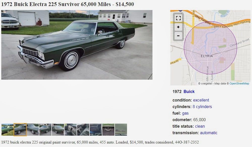 I’ve been on the road for a couple of weeks, and I see that craigslist ads haven’t changed much; a lot of sellers still don’t provide engine photos. Sadly, that’s the case here, but the back seat sure looks nice. This car has a Buick 455-cu.in. OHV V8 with 225 horsepower and 360 lb-ft of torque when new. It’s backed by a THM-400 three-speed automatic and the seller doesn’t say how it runs and drives, but I have to believe it works as well as it looks. How much would you pay for this 225?