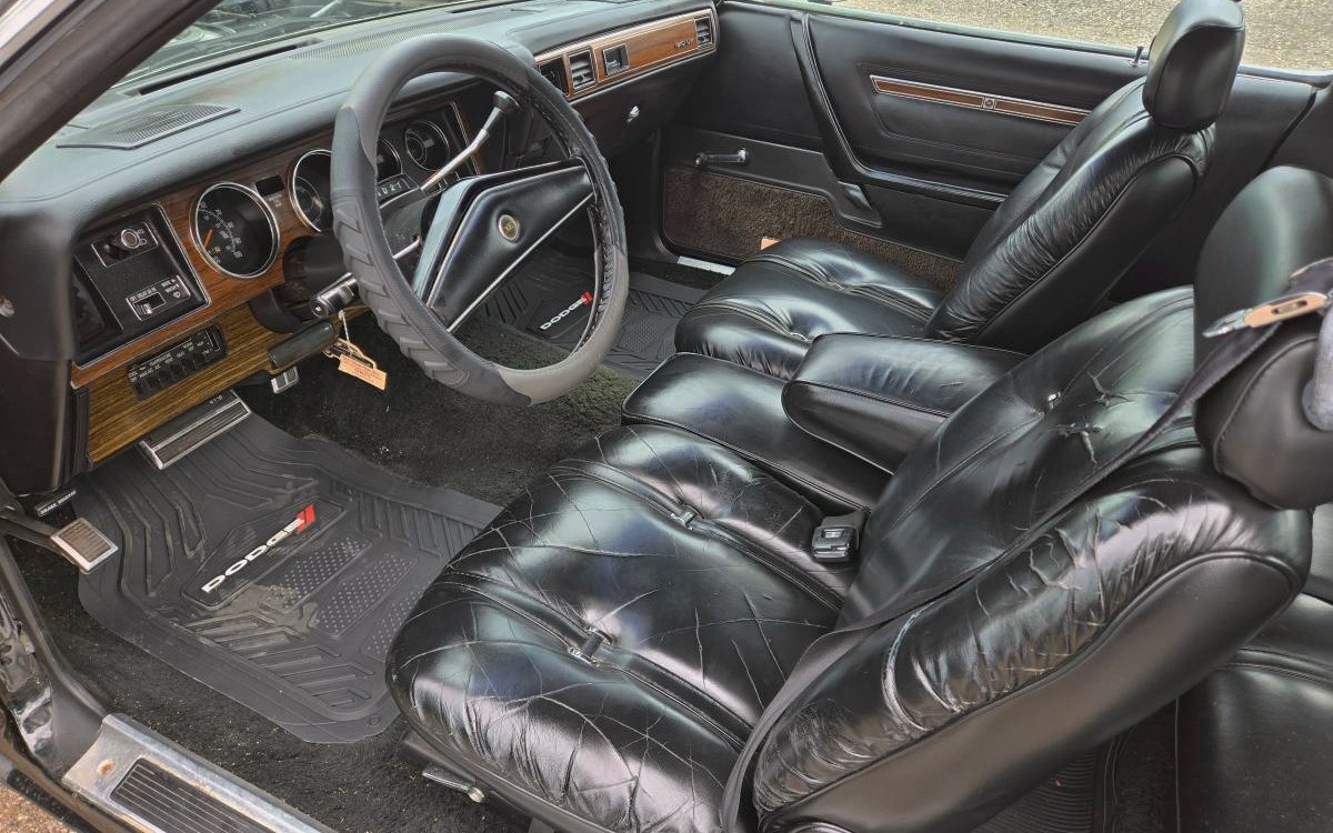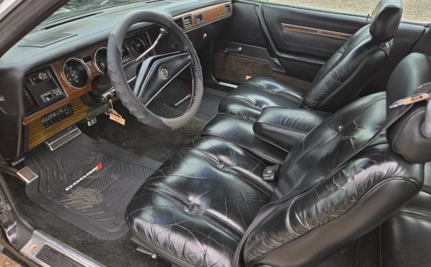 Speaking of black, check out this black leather interior! Some cracking on the driver’s seat is hard to miss, but I don’t see any tears or major damage anywhere. They say the interior is in “excellent” condition, and I tend to agree with that assessment, especially for a 47-year-old car with 65,000 miles on it. The back seat area looks like it’s right out of a brochure. Speaking of the same 1978 Magnum XE brochure that Mr. Magnus Magnum XE came from, the sunglasses guy, here’s one of the most-awkwardly-written passages that I’ve read, and that from a guy who regularly writes awkwardly-written passages: “Somebody thought a long, hard time about this new Dodge. Thought about a very special car with a very American way of getting a person who likes to drive where he’d like to go.” What?!