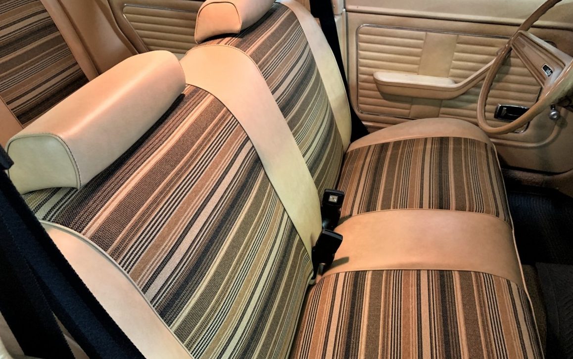 I like Mavericks, but I’d have to agree this one is…. not particularly attractive. The color, the first year of front and rear big bumpers, the lack of trim and the base hub caps. Though maybe, that is its attraction ?? I do like the period-correct striped upholstery. Sure wish we had the whole story on why it went straight to storage. Must have been high-quality storage, the engine compartment normally will have tarnished finishes after 45 years but this one looks very good. Frankly I’m not sure what I would do with it.