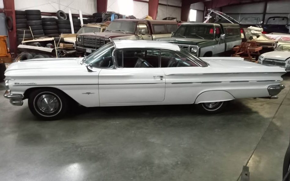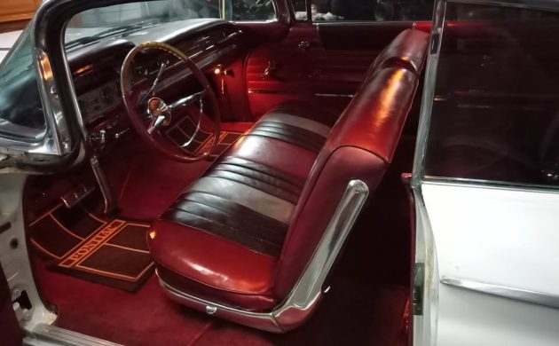 In those pre-muscle-car, pre-Grand-Prix days of 1960, the Bonneville was the undisputed top-of-the-line in Pontiac’s growing corner of General Motors, and as such, it got the hottest standard 389 in the lineup. With Hydra-Matic (the four-speed variety, back before the Turbo 400 was a thing), that engine had 303 horsepower and 425 lb.-ft. of torque. When coupled with a standard 3.08:1 gear, the big Pontiac wouldn’t be embarrassed in any impromptu light-to-light affairs back in 1960. The original carburetor (which should be a Carter AFB) has been rebuilt and the car has “all new brakes.” You may have noticed that this Bonneville is, unsurprisingly, a power-steering-and-brake-equipped car. The seller claims that the car has 66,498 miles on the odometer, and given the condition of the engine compartment, I’d be inclined to say it’s original.