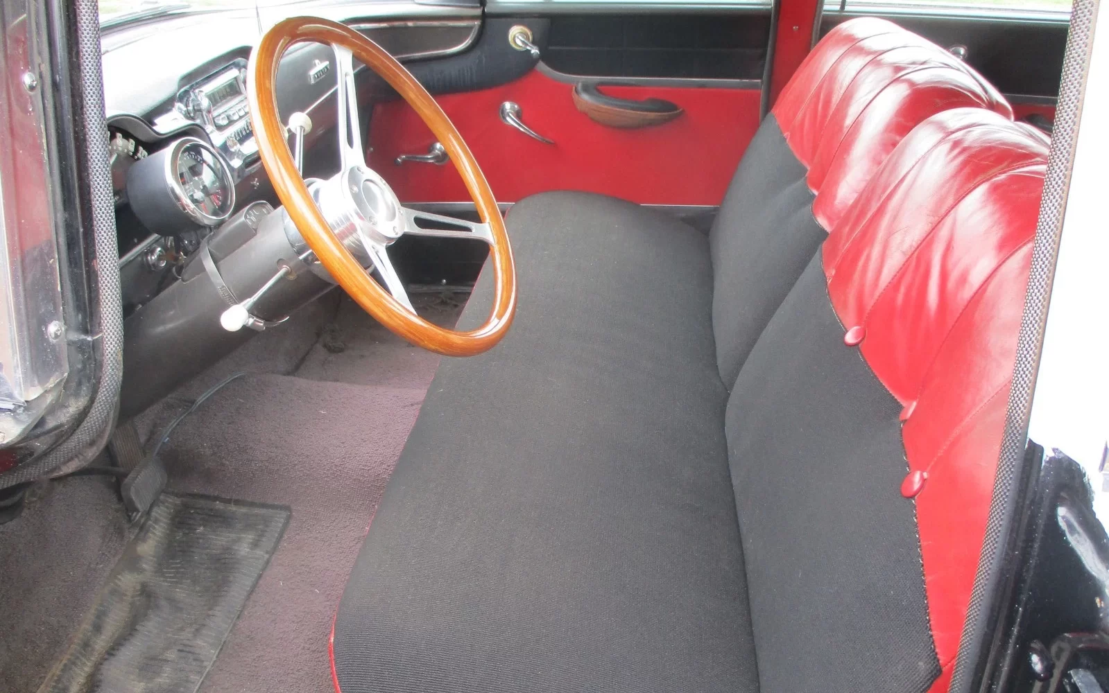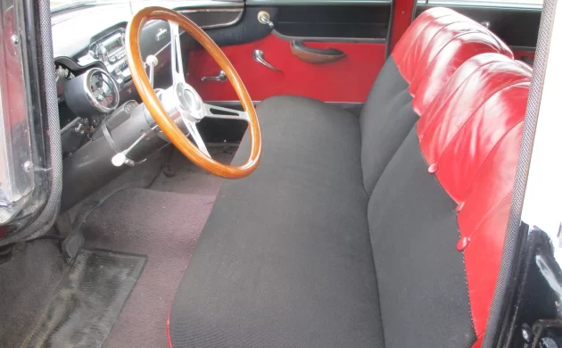 That’s not to say that this will be a trouble-free, turnkey purchase. While the Wasp’s factory 202-cubic-inch “Twin H-Power” six is still taking up residence under the hood (with 130 horsepower from the factory), it appears that someone needs to put down the soldering iron. Hudsons still used a positive-ground 6-volt electrical system in 1955, and this one has clearly been converted to a 12-volt system; however, it doesn’t appear to be a very neat job, and indeed the seller says that the car runs reasonably well but lacks power because “the owner…doesn’t know how to time it.” The Summit Racing catalog has seemingly been tossed at the Wasp, with what appears to be an MSD coil, a chromed alternator conversion, an aluminum radiator, and those twisty hose clamps all sharing space in the engine compartment. I know that there are downsides to a 6-volt electrical system (especially one with positive ground), but I always wish that people would try it out for a while before making conversions: Most of the time, 6-volt systems still work just fine. Still, you could clean up what’s here given a little time.