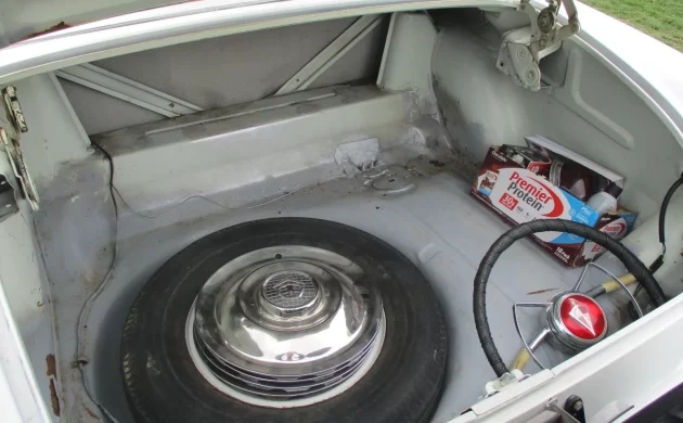 There’s that original steering wheel. The Wasp comes with an extra spare tire (more on that in a minute), and the trunk/undercarriage pictures show a car that clearly hasn’t been restored but is in solid survivor condition. A coat of white paint and a new mat in the trunk will have it looking just fine.
