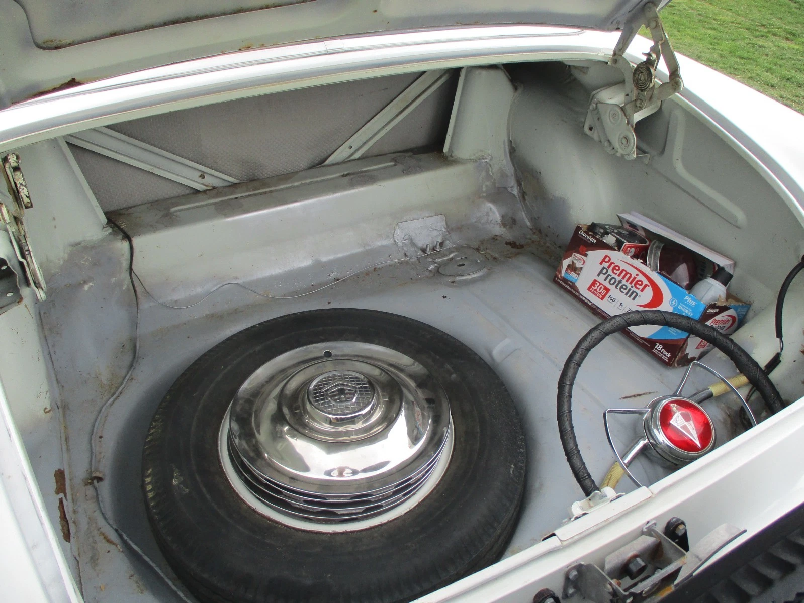 The carpet is apparently original and needs replacement, but the “lower” upholstery and headliner are newer, and the seats match other 1955 Hudsons I’ve seen (not that there are many). Luckily, the original steering wheel will come with the car, although in terms of aftermarket wheels, this one isn’t too bad.