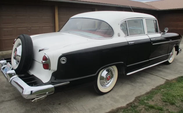 Its a handsome car. The black and white ( like the ’55 Olds on here a few days back) looks sharp together. And the red interior really can compliment it. Unfortunately, for me, the electrical issues would make me nervous. I tell people all the time……. I hate wiring!!! My wife will even tell you, I hate wiring!! Some people ( who I would consider waaaay smarter than me) could look at a rats nest maze of wires and figure it out, but not me. I oftentimes tell people that a man has his limitations, and I know mine, and its wiring…. I agree with Aaron, there’s nothing wrong with a properly maintained 6 volt system especially if its properly maintained. I’m glad the original wheel is with the car, that would go back on. But I think you’d need a truly good mechaic ( like Geomechs for example) to figure it out. I wonder if you could even get a wire harness for it. It would be nice to see this Hudson back on the road for sure. Nice write up on a not often seen Hudson Aaron, thank you. Great find too Jack N.