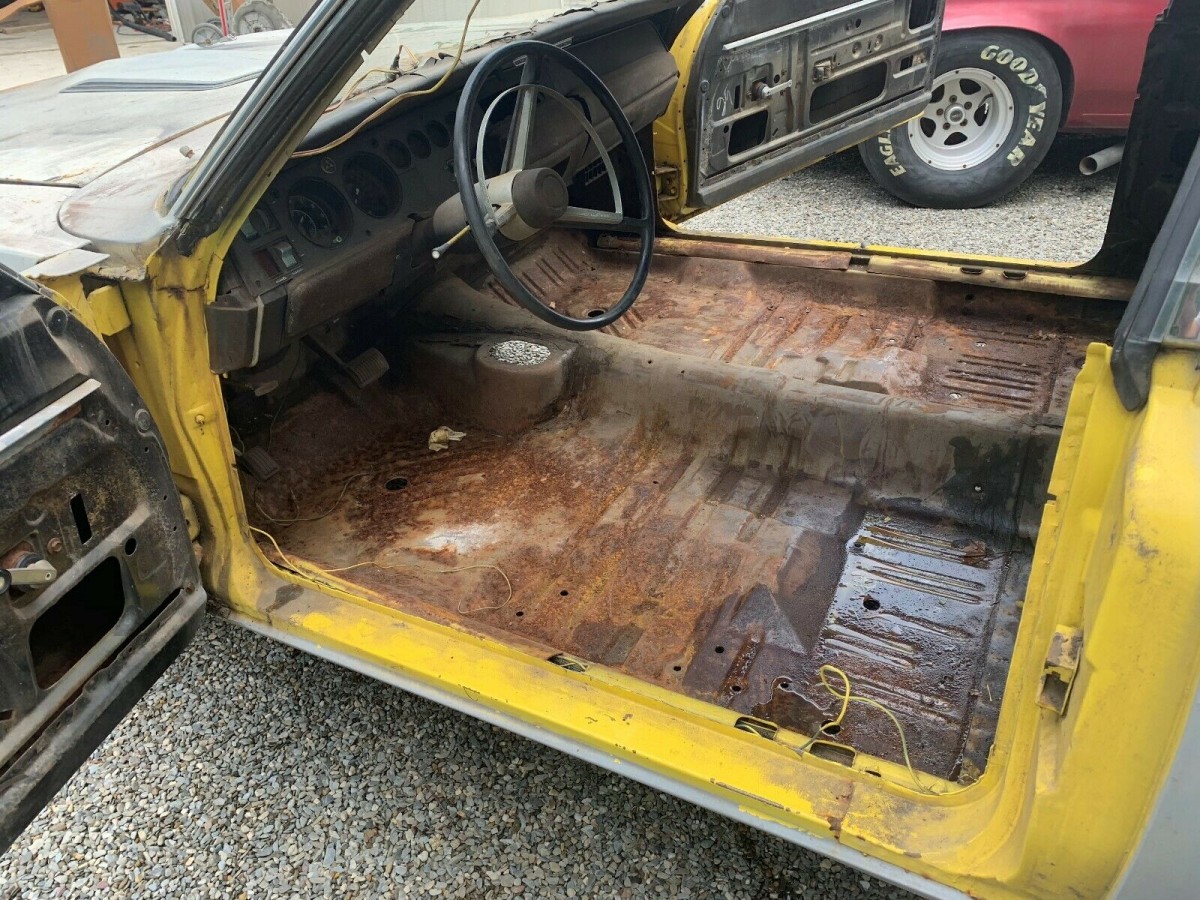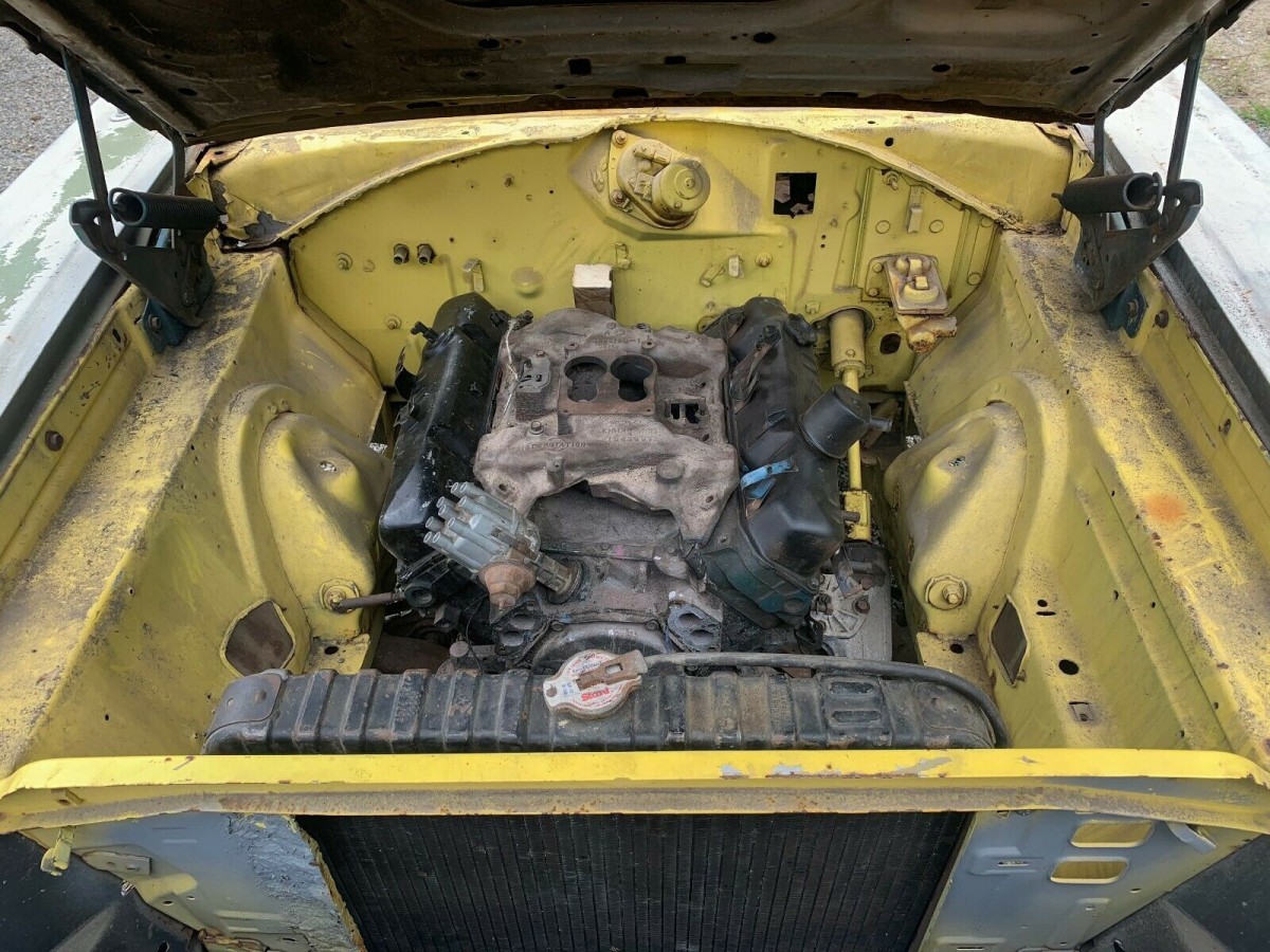 Finished in Yellow, the Dodge appears to be an essentially solid car. The floors wear a solid coating of surface corrosion, and I can see some minor holes on the passenger side. These could be patched, but I suspect that the next owner will probably replace at least the front floors to bring the car up to a high standard. There is rust in other areas of the vehicle that will need to be attended to, including the trunk pan, which will definitely need to be replaced. There is also rust present around the rear glass, and I would probably be giving the rear frame rails a serious look because the corrosion there is quite heavy. To help kick the restoration project along, the owner is including a fresh set of quarter panels, trunk drop-offs, and outer wheel wells. It appears that the majority of the exterior trim is present, but some of it is going to require some restoration work before it finds itself being reattached to the body.