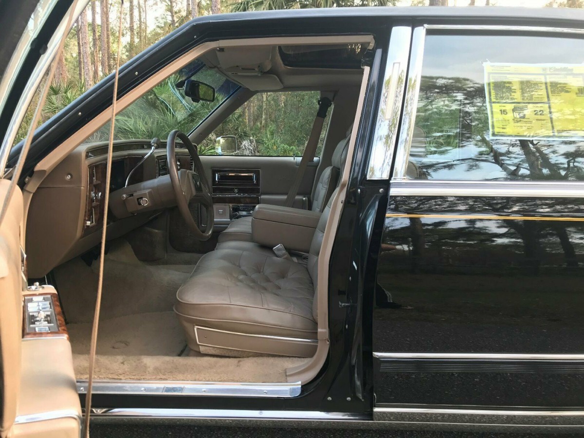 This car, in particular, has reportedly only traveled about 6,000 original miles and has just about every option available at the time. The seller says it well when they say: ” …it is loaded out with pretty much every factory option that was offered on the Brougham in 1990 including the oh so rare factory astroroof, wire wheels, 5.7 liter V8 engine, FE2 ride and handling package, towing package, auto dimming mirror, factory security alarm & locking fuel door, gold package, trumpet horn and pretty much everything else except for the factory CD player. All of these options are backed up by the factory RPO sticker in the trunk, window sticker and factory build sheet which is still perfectly intact with the car located under the rear seat.” and also: “My Brougham comes with its original gold keys, gold key delivery cassette tape, sales brochure, floor mats, trunk mat, owners manuals, factory build sheet (still under the rear seat) and original window sticker. Even the factory alarm stickers are still unblemished and on the car. Basically, it is like buying a brand new 1990 Brougham d’elegance only that it is 29 years later…”