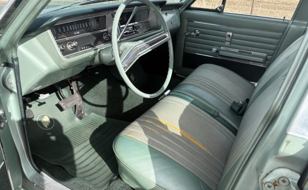 The undercarriage appears to be in excellent condition, and the fact that original-looking “spiral” shocks are in place lends some credence to the mileage claim. Most of the chassis parts are shared with other GM A-Bodies, so mechanical parts availability is quite good.