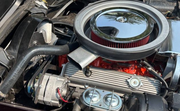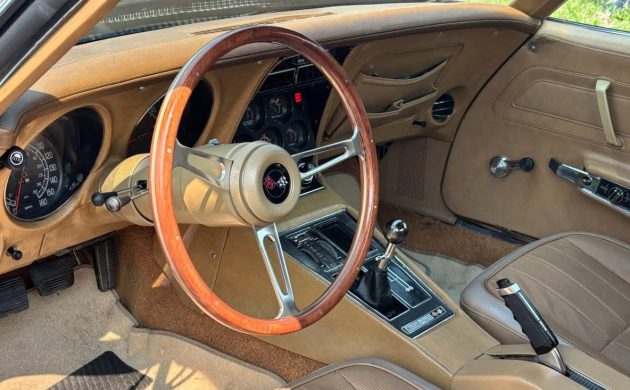1974 was the end of 454 availability for the C3, with no big block power available for the ’75 model. Engine choices were now down to two, both of the 350 variety, and came in your choice of the entry-level L48 or the optional L82. This one’s a base L48, which by now had dropped to 165 horsepower. The catalytic converter has been removed, and there’s now a true dual exhaust system underneath, with a fresh pair of Thrush mufflers installed. This one’s also equipped with a 4-speed manual transmission, so while this one doesn’t offer the same sort of performance capabilities as some of the earlier cars, it’s probably still rewarding to get behind the wheel of.