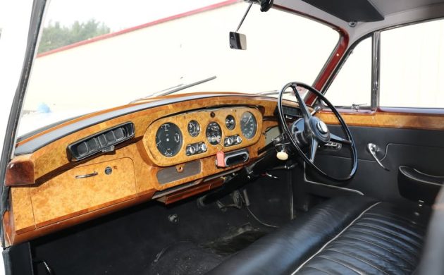 The big news for the S2 Bentley was the new 6.25-liter V8, introduced in 1959. With two 1 3/4-inch SU carburetors up top, the new RR/Bentleys could accelerate to 60 in a quiet 11.5 seconds, all the while returning similar fuel mileage to the old six from the S1. This one has a modern air conditioning compressor, which was a factory option, but the seller doesn’t mention if it’s working or not (I think we know the answer, but hope springs eternal). This is certainly not a show-detailed engine compartment, but if you’re looking for a clean driver, it’s fine.