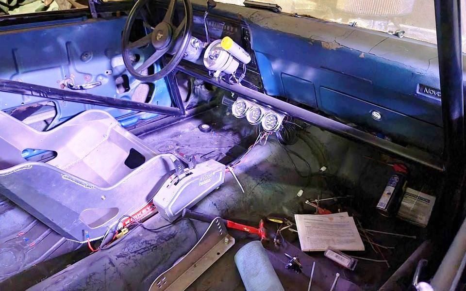 It’s all business in the stripped-out cockpit. If you like your 700 HP Nova family vacation-ready, you’ve got some work to do. The roll cage adds peace of mind and structure to the unibody Nova. I’ve heard at least one story of a built V8 with solid engine mounts bending a Nova’s front subframe. Unlike some cars with giant engines, this one’s budget extended to some aftermarket suspension and other upgrades as well.
