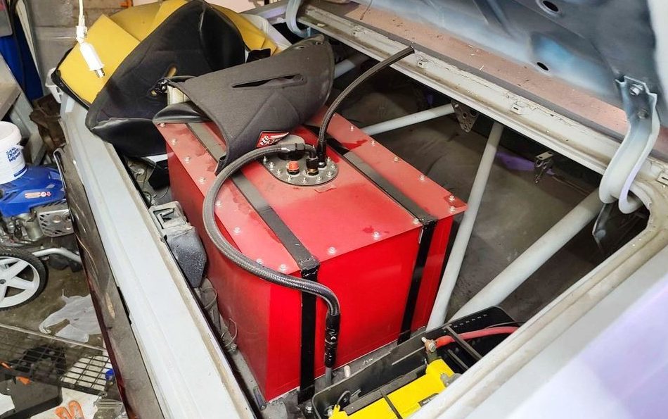 Serious bracket cars use large fuel cells like this one. Tracks hot lap cars in later rounds, especially those that have a curfew. At a minimum it takes several additional minutes to return to a pit and add gas. My old track, on more than one occasion had to run rounds before all of the competitors made it back to the staging lanes. The track had no choice if they wanted to finish the race.
