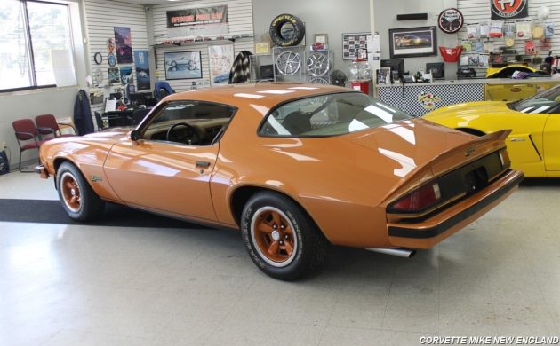 The color of this automobile looks like Persimmon to me, but the actual hue is Code 78 Orange, flanked by a Buckskin bucket seat interior. The body, paint, and interior all look great, although the carpeting may be slightly faded over the rear hump. This Camaro has the F41 Special Performance Suspension, which should make for a more spirited ride when you’re working those curves on the Tail of the Dragon in North Carolina/Tennessee.