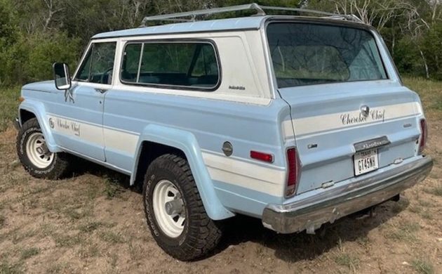 Wedgewood Blue is the least likely color I expected to see on a tough, two-door Jeep Cherokee Chief, maybe that’s why I like it so much. It isn’t black with black wheels and black tint on the windows and blacked-out trim…zzzzzzzz… The seller has this 1979 Jeep Cherokee Chief listed here on eBay in one of my favorite cities in America: San Antonio, Texas, and the current bid price is $810.