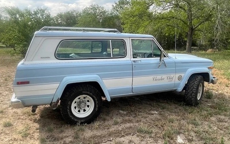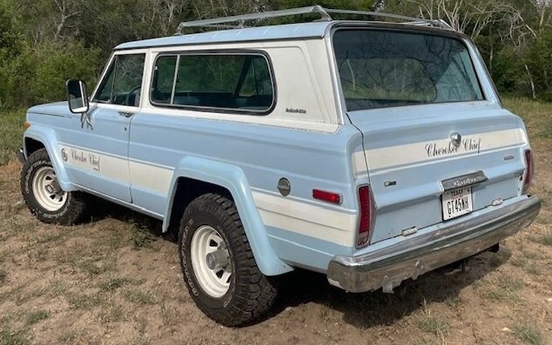 Wedgewood Blue is the least likely color I expected to see on a tough, two-door Jeep Cherokee Chief, maybe that’s why I like it so much. It isn’t black with black wheels and black tint on the windows and blacked-out trim…zzzzzzzz… The seller has this 1979 Jeep Cherokee Chief listed here on eBay in one of my favorite cities in America: San Antonio, Texas, and the current bid price is $810.