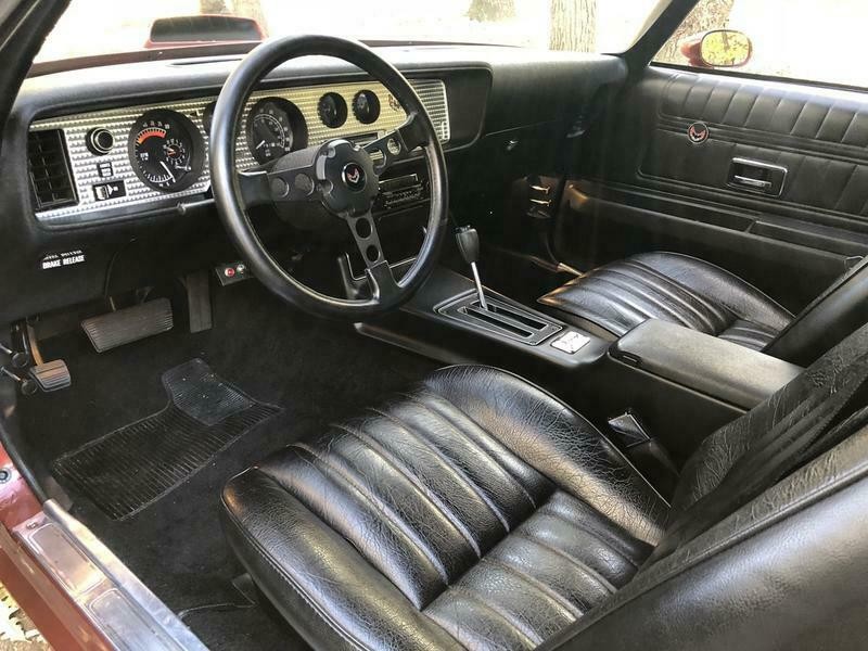 I’m assuming those are original graphics, which look to be holding up nicely. The iconic bird graphic on the hood is also nicely preserved, ensuring no one ever mistakes it for a Camaro. The red paint is deep and lustrous, also presumed to be original. The back seat shows next to zero signs of use, as you’d expect for a low mileage muscle car like this.