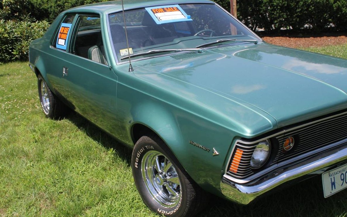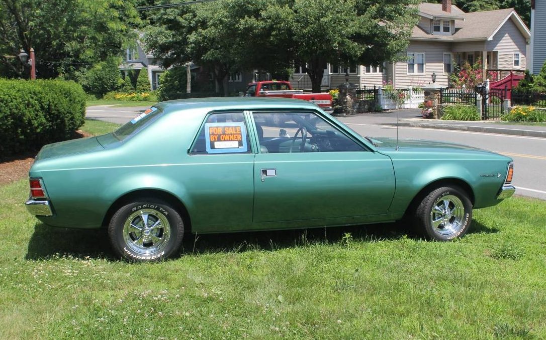 Looks like a little screamer to me, those wheels sure are a nice improvement, but with the six they kind of don’t fit what I’m visioning. Just the way it sits now, but with a 401 or older 390. No clone, just a throw back street cruiser. I like the looks of this much more than the Ford Maverick, which is what it reminds me of just a little bit. I’m not that familiar with AMC products at all except what I’ve seen and read, but this car has my interest.