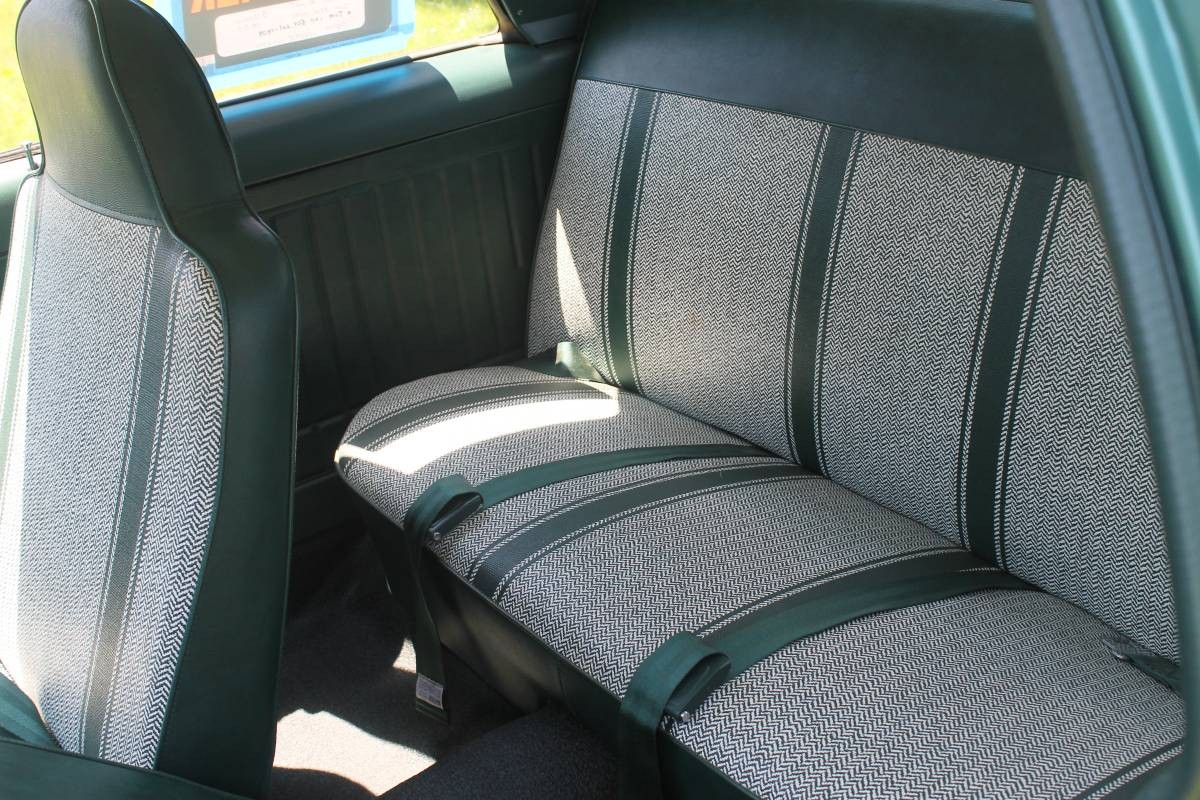 The interior looks absolutely perfect, without any sun fading or cracks that I can see. That’s the seat and steering wheel I learned to drive behind (and with bias-ply recaps and no power steering, it helped to have some arm muscle!)